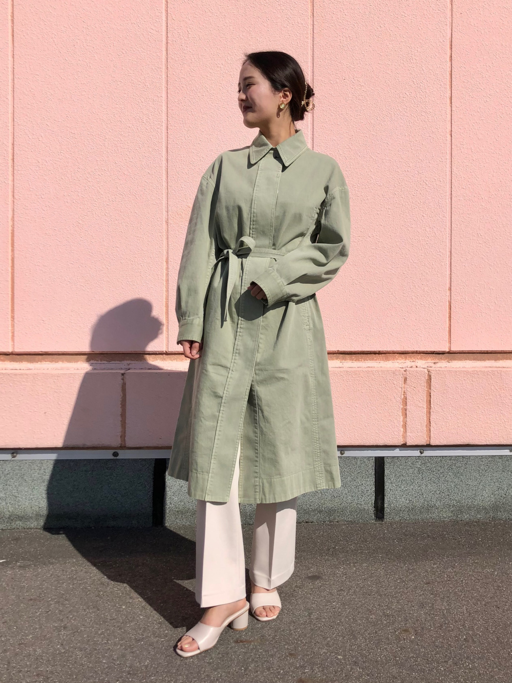 ベルテッドコートワンピース 5分袖 シャツコート の着用コーディネート ユニクロ